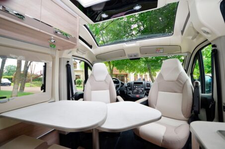Baptisé Skyview, on le retrouve cette année chez Rapido : de série sur le V62 et en option sur le V55 et V68 (1250 €). Ces deux derniers profitent de la cabine ouverte de série (suppression du rangement qui la surplombait jusque-là). Si l’on ne profite pas du gain de lumière du Skyview, on gagne sensiblement en volume intérieur et l’accès à la cabine s’en trouve facilité.