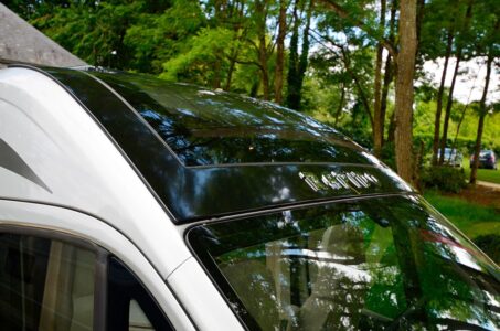 Nous l’écrivions en préambule, le groupe Rapido a été précurseur en proposant un fourgon avec toit panoramique vitré dès la collection 2019 chez Campérêve. Plus de lumière, plus d’espace, c’est une vraie révolution. Sans compter le supplément de style qu’il apporte aux véhicules qu’il équipe. En verre feuilleté, bombé, serti dans une pièce de polyester noire, il s’intègre parfaitement à la carrosserie.