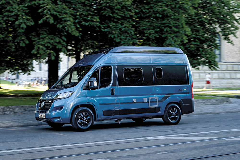 Après le Free 600 Blue Evolution présenté en 2019 avec succès, le Free 540 prend la relève. Design sportif ravageur, la carrosserie Bleu Tempête associée aux multiples équipements noirs ne laisse pas indifférent. Outre la dotation d’origine Free, cette série spéciale inclut notamment le toit relevable avec couchage double, le châssis 3,5 t, la clim, le régulateur de vitesse, les stores plissés de cabine, le réservoir carburant 90 l, un système de navigation avec écran tactile 7 pouces ou encore la fixation Isofix.