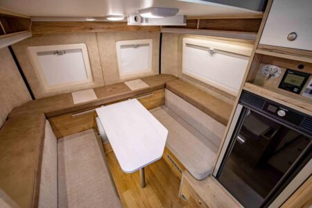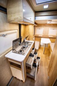 Dans un contexte très particulier, le catalogue France se concentre pour l’instant sur les seuls aménagements sur Peugeot Boxer, parmi lesquels le Mega Classic 600 et le Mega Sport 640 ; deux solides références attendues lors du Camper Van Week-End, du 29 avril au 1er mai. Pour l’occasion, le Sport 640 sera même équipé d’un lit de pavillon électrique pour moduler le volume de soute.