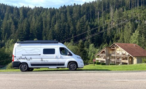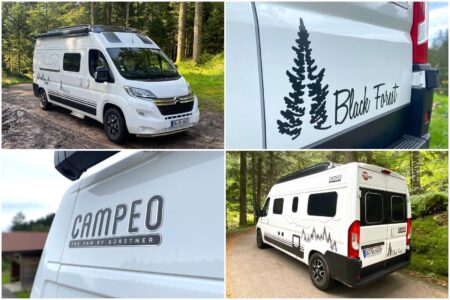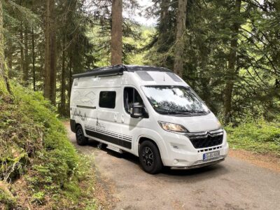 Au terme de cet essai, que retenir de ce Campeo C 600 version « Black Forest » ? Si nous avons relevé quelques points critiques, comme le volume dédié à la douche ou encore la profondeur de la dînette, rappelons qu’il s’agit là de faiblesses assez communes sur les fourgons compacts de moins de 6 mètres. A l’inverse, l’espace alloué au lit et à la cuisine sont de vrais motifs de satisfaction. Ce campervan Bürstner offre par ailleurs une belle variété de rangements. Au-delà des solutions déjà évoquées (soute, placards de pavillon, sacoches murales…), il intègre un grand placard au dos de la banquette, deux compartiments dans l’estrade du salon ou encore des coffres sous le lit. En terme d’autonomie, les réserves d’eau propre / eaux usées nous ont semblé suffisantes. Et la batterie cellule nous a permis de tenir 4 jours sans avoir à se brancher au secteur ; en faisant, il est vrai, attention à notre consommation d’électricité. Le réfrigérateur à compression étant par nature gourmand en électricité, le recours à une deuxième batterie cellule et/ou un panneau solaire apparaît comme un choix judicieux (AGM 95 Ah : +480€ / Lithium 90 Ah : +1944€).