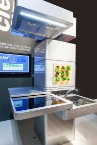 Mais comment fait l’Ecooking pour offrir autant de fonctionnalités avec une si faible emprise au sol ? Conçue comme un îlot, mais pouvant très bien être positionnée dans un angle, la colonne dispose en fait de plusieurs axes rotatifs qui permettent de la moduler selon les besoins. En prime, elle se veut écolo car l’eau du robinet est filtrée puis réutilisée pour le lave-vaisselle et l’arrosage des herbes. Des panneaux solaires sont également prévus pour alimenter une partie des appareils électroménagers.