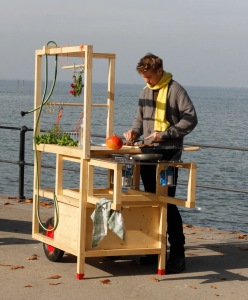 Récompensé d’un prix au salon du design de Berlin en 2012, ce concept développé par le studio autrichien chmara.rosinke s’inspire de l’esprit de la cuisine de rue asiatique. La Mobile Hospitality comporte deux modules prenant la forme de brouettes : la cuisine + la table et ses 10 tabourets pliants. Autrement dit, elle est faite pour cuisiner en extérieur ! Mais pourquoi ne pas l’imaginer dans un grand van, avec quelques ajustements ?