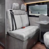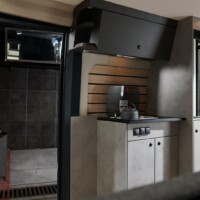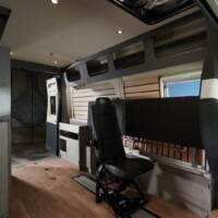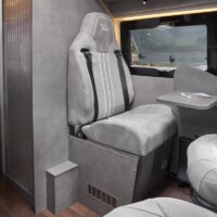 Toujours dans cet esprit de moduler l’espace selon les besoins, certains remplacent la traditionnelle banquette face-route par des sièges individuels coulissants et amovibles (Carriage Forrest Hyperion) ou développent des salles d’eau avec cloison pivotante, permettant de switcher entre compartiment toilette et cabine de douche (voir Font-Vendôme notamment). D’autres, à l’image de Mobho, proposent encore des fourgons équipés de modules entièrement démontables pour une flexibilité maximale.