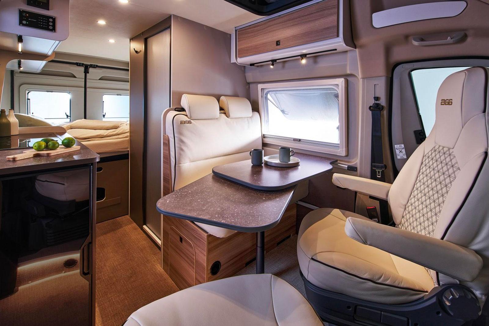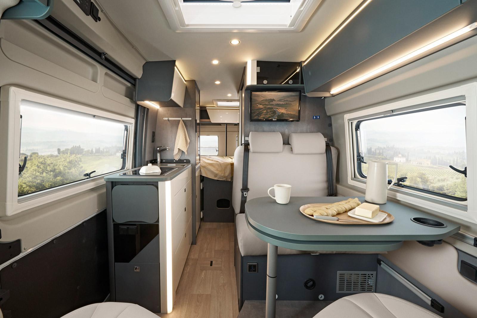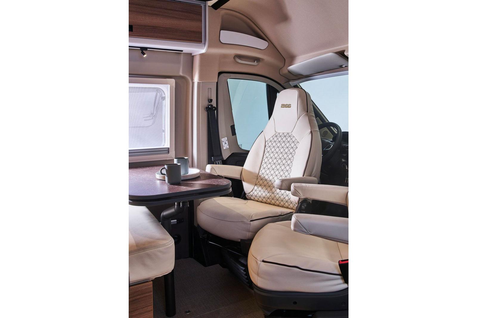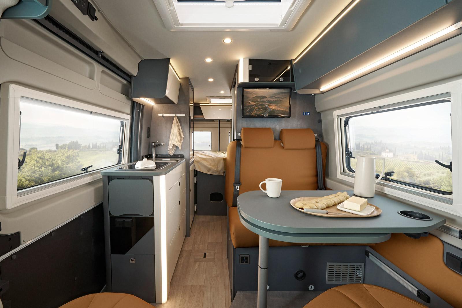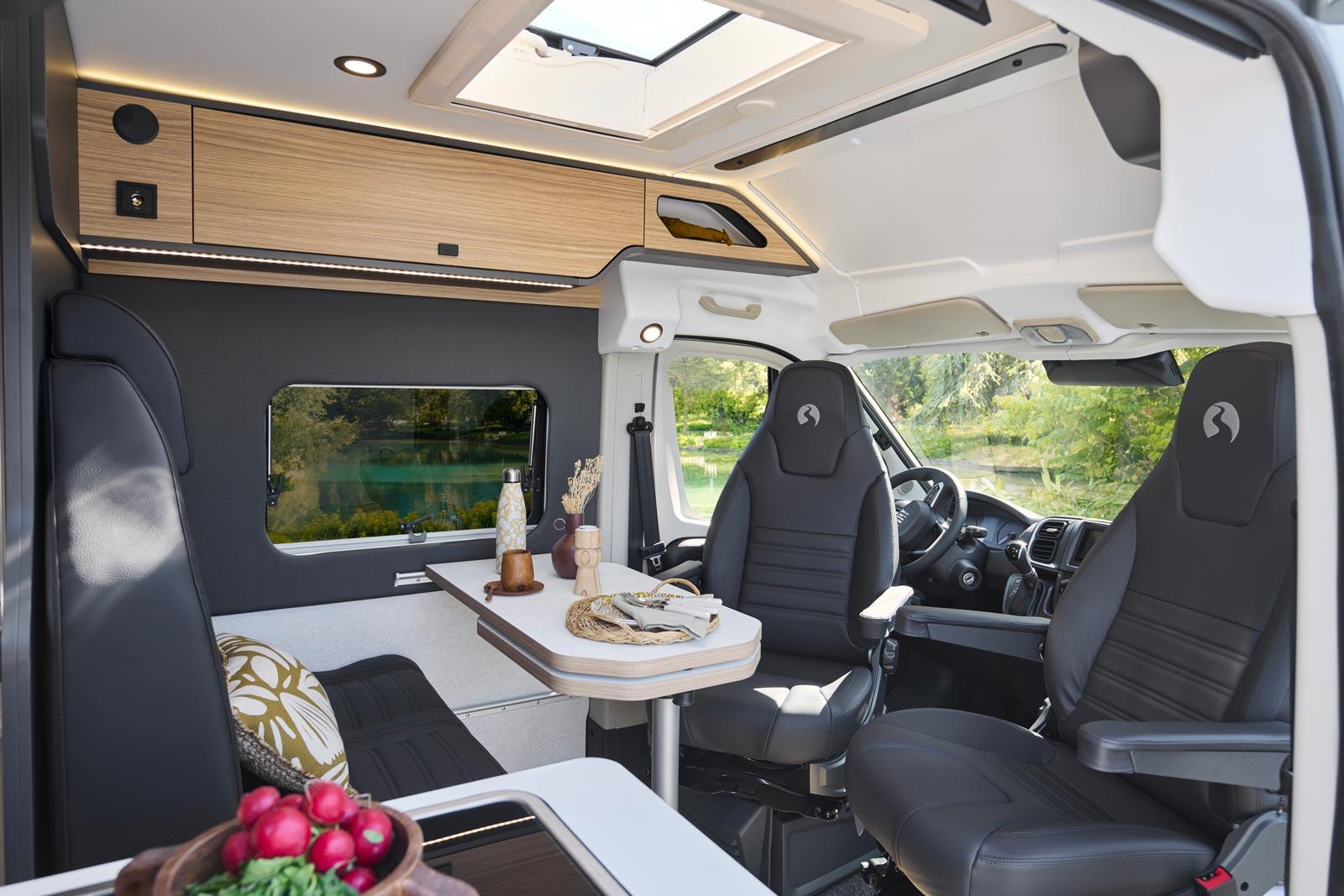 Chez Laika, c’est le Kosmo 60 sur Fiat Ducato qui fait l’objet d’une série spéciale Supremo. Cette fois, le suréquipement est associé à un parti pris stylistique très tranché, inspiré du sport automobile, avec des couleurs de carrosserie et de sellerie qui sortent franchement de l’ordinaire.
