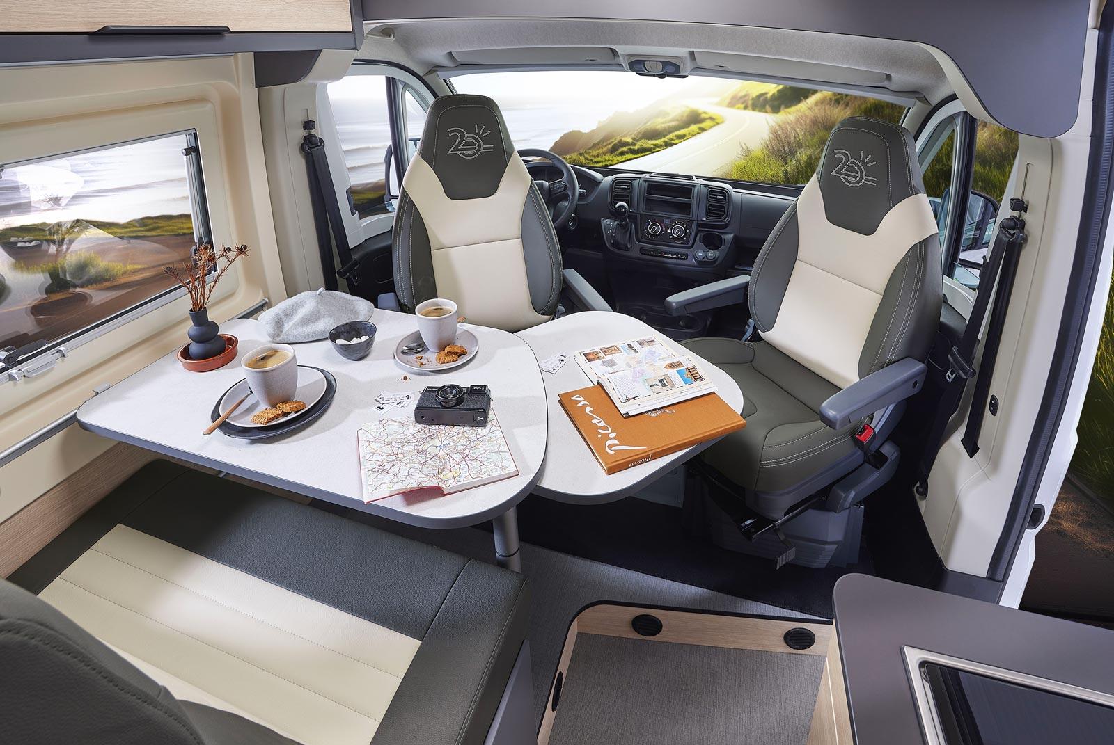 À quelques détails près, ces modèles 60 ans reprennent l’équipement de la gamme intermédiaire Twin Suprême (base Fiat 140 ch et carrosserie gris métal Artense) tout en s’affichant à un tarif inférieur (-2100 €). De surcroît, ils y ajoutent :