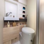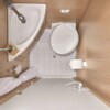 Son lit de grandes dimensions (195 x 135 / 133 cm) et faiblement biseauté plaide également en sa faveur. Mais cela a des répercussions sur la salle d’eau 2 en 1, qui semble du coup un brin étriquée. Le rideau souple dans la douche n’emporte pas non plus l’adhésion face aux systèmes de porte rigide coulissante. Pour l’intimité à l’étape, il faudra se contenter d’un simple rideau en tissu en cabine et de volets à ventouses ; plus luxueux, les stores plissés sont en option (+1679€).