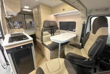 Comme l’an dernier, ce fourgon aménagé issu du groupe Rapido se positionne comme le modèle au prix de départ le plus agressif du marché. Mais à moins de voyager seul ou de considérer que l’airbag passager est accessoire, le pack Giottivan s’impose comme une obligation. Celui-ci comprend, entre autres,  la climatisation cabine, l’ESP, un lit de dînette, le parechoc peint, etc.