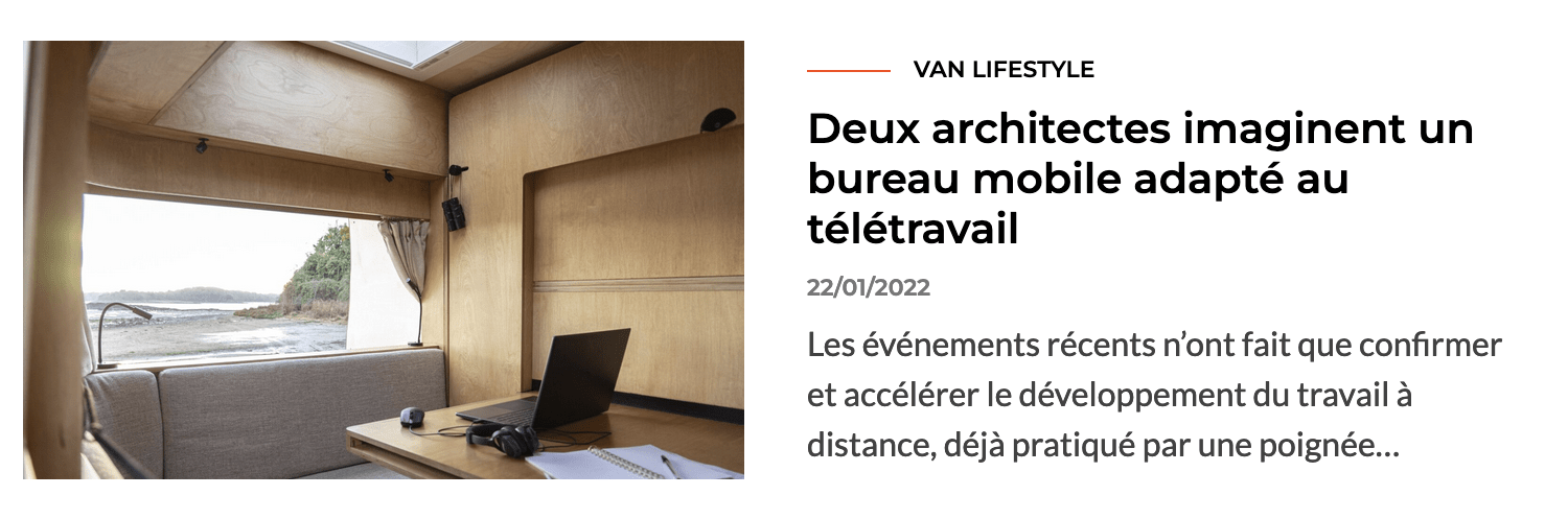 Le boom du télétravail et le phénomène de la vanlife inspirent (aussi) les architectes. En 2022, le studio Atelier JMCA dévoilait un projet de bureau mobile – autonome en énergie – installé dans un fourgon.