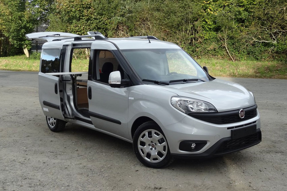25830 €Porteur : Fiat Doblo – Motorisation : 1,6 l/105 ch – Longueur : 4,74 m – Couchage principal : banquette convertible 125 x 190 cm