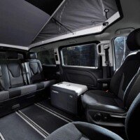 S’inspirant directement du Vanstar, Crosscamp a dévoilé cet été le Base X sur Mercedes Vito (5,14m). Même châssis étoilé, même concept. Le Base X joue la carte du mini-van premium, avec un aménagement simple, mais néanmoins complet pour des escapades en toutes saisons. 5 places route et 4 places nuit sont ici disponibles, grâce à la banquette 3 places coulissante et convertible en lit bas (192 x 144 cm) et le lit haut (193 x 110 cm) intégré au toit relevable. La dotation d’origine inclut également : plaque de cuisson à induction rabattable contre la paroi dans le coffre, glacière mobile 36 L avec kit de fixation sur rail, chauffage alimenté au diesel et géré par un panneau de contrôle, table escamotable et logeable sous la rallonge de lit, vitrage arrière teinté, filet de rangement, éclairages divers, batterie 100 Ah, etc.