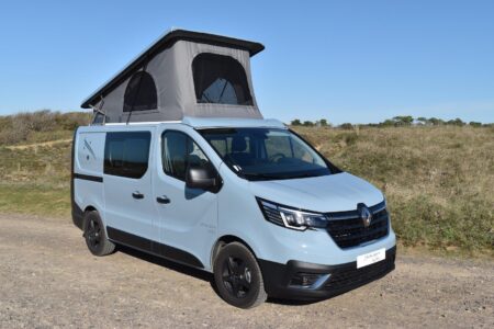 L’Auto-Loisirs WE n’est pas un nouveau modèle, mais il a été profondément repensé cette année. Sur Trafic Court (5,08m), ce van entièrement fabriqué en France hérite d’un confortable niveau d’équipement : petit toit relevable de type champignon permettant de se tenir debout à l’intérieur, table sur trépied, banquette 3 places coulissante et convertible en couchage extra-large (187 x 150 cm), batterie auxiliaire 110Ah, isolation renforcée des ouvrants, des parois et du plancher…