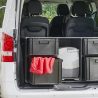 VANLINE Vanstar avec Campbox « Lite » – Plus légère et accessible, cette nouvelle box offre dans sa configuration la plus complète trois caisses de rangements en plastique, une cuisine en tiroir et un lit dépliable. L’ensemble peut être complété d’une glacière, en option.