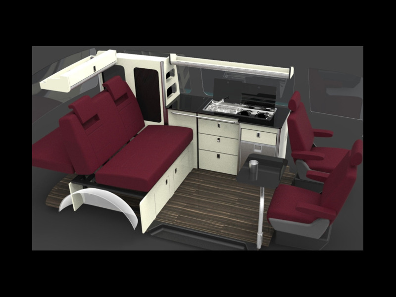 Ici, toutes les demandes – ou presque – peuvent être satisfaites. Si la pose d’un toit levable n’est pas encore au programme (mais cela ne saurait tarder), les prestations peuvent aller de la plus minimaliste à la plus complexe, du seul habillage des parois intérieures (à partir de 650 €) à l’implantation complète fixe comprenant banquette convertible homologuée avec ceinture 3 points, meuble de cuisine et rangements, chauffage, équipement… (à partir de 12000 €). Sur VW T5 et T6 ou sur Renault Trafic et autres modèles assimilés.
