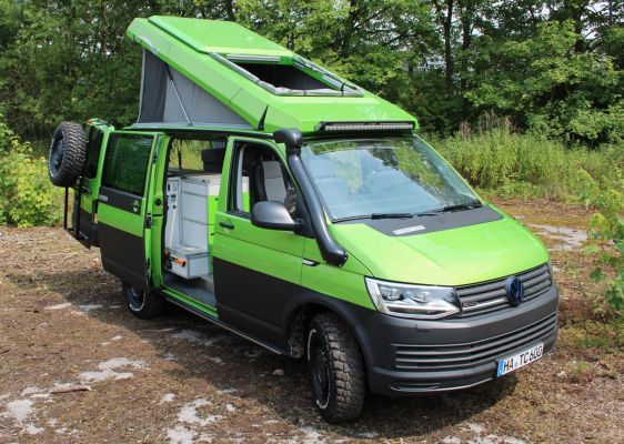 Ce toit est à l’œuvre sur le modèle Terock à transmission intégral aménagé sur base VW T6 par Terracamper. Un fourgon clairement destiné aux grands voyages et à une pratique off-road sur terrains hostiles, ce qui dédouane sa hauteur de 2,25 m peu compatible avec l’accès aux parkings urbains.