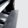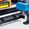 Le marchepied ETB d’Alphadynamik est décliné en 6 versions, d’une largeur variant de 90 cm à 131 cm selon le véhicule (pour 16 cm de profondeur). Lorsque la porte s’ouvre ou se ferme, le marchepied se déploie ou se rétracte en 2 secondes. « Il s’ancre sous le véhicule à l’aide de pattes et se montre à peine visible une fois replié sous le châssis, vante Jean Vivès, l’un des commerciaux d’Actifleet. Ce qui a l’avantage de ne pas trop réduire la garde au sol du véhicule ».