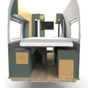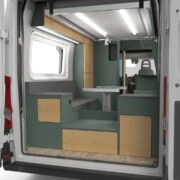 Au programme de ce nouvel aménageur, un premier modèle sur Fiat Ducato L3H2 (5,99 m). Comme son nom l’indique le RÊVADEUX vient occuper un segment encore timide, celui du fourgon pour deux personnes. Dépourvu de banquette face route, les premières images de ce RÊVADEUX révèlent un aménagement constitué d’un grand salon dînette à l’arrière, surmonté d’un lit de pavillon. Avec cabinet de toilette, grand frigo et bloc cuisine à l’avant. Il faudra patienter jusqu’à la rentrée pour de plus amples informations techniques.