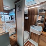 Les meubles, de leur côté, font appel à des panneaux en HPL ou stratifié haute pression (0,6mm), résistant aux chocs et rayures. En option, la marque propose, depuis 2020, un concept de meuble ultraléger, baptisé AIR. Le mobilier est alors fabriqué en panneaux de plastique PET recyclé, avec un placage HPL en surface. Cette solution inspirée de l’aéronautique permet de gagner, selon le modèle, de 180 à 220 kg de charge utile ! Un avantage qui se monnaye toutefois au prix fort : + 3049€.