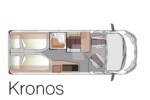 - Kronos (5,99m) – Modèle 4 places route avec dînette avant et lit longitudinal XXL à l’arrière.
