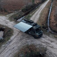 Quelques équipements extérieurs ont aussi nécessité un peu d’ingéniosité. Comme l’échelle pour accéder au toit. « Nous l’avons fabriquée à partir de trois échelles de T6, raconte Florentin. La galerie de toit a aussi été construite sur-mesure. Nous avons été obligés d’assembler plusieurs morceaux de galerie Frontrunner, avec l’accord de distributeurs, pour qu’elle s’adapte parfaitement au toit ».