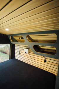 Après avoir démonté les équipements d’origine du camion, Van Helping isole toutes les parois, les portes et le plafond avec du liège projeté et de la laine de chanvre. Du liège expansé est appliqué sur le sol. Le faisceau électrique d’origine est aussi simplifié.