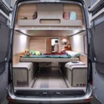 Entre les premiers dessins de l’Alphavan et sa mise en production, dix ans se sont écoulés. Le temps pour Stefan Krause de se faire la main en aménageant différents fourgons ; à commencer par son Sprinter (voir aussi le Concept Camper exposé à Düsseldorf). Déjà, son obsession est de créer un véhicule aussi léger que modulable.