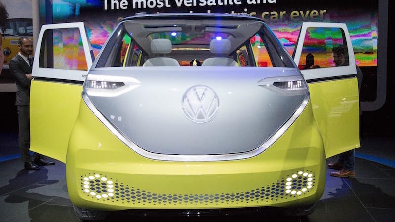 La voiture 100% électrique fait son chemin chez Volkswagen, avec, pour objectif, une production en série à l’horizon 2020. Dans le cadre du Salon de Detroit, la firme de Wolfsburg avance une nouvelle étude au travers du concept-car « I.D. BUZZ » qui se présente sous la forme d’un premier monospace autonome avec motorisation électrique. Le véhicule se destine en priorité aux familles – huit personnes pouvant s’y installer- et compte deux coffres, de 660 à 4600 l à l’arrière, de 200 l à l’avant.