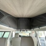 Autre petit plus : dans la chambre haute, une trappe en aluminium permet de fermer l’accès et d’étendre au besoin, la longueur du couchage (195 x 110 cm) jusqu’à 230 cm. « Ce toit offre un super niveau de finition et un bon positionnement prix par rapport à d’autres toits ultra-fins », juge Yoann. Sans supplément, sur les Multivan et Caravelle, Atek propose de garder une bouche de climatisation à l’arrière. La toile de toit se montre également interchangeable et bien équipée avec son ouverture panoramique et ses 3 fenêtres dotées de moustiquaires.