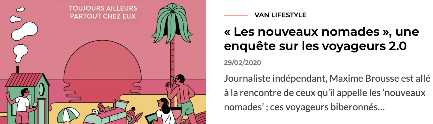 Si l’ouvrage est en grande partie consacré au continent américain (nord et sud), il fait une petite incursion en Europe (Écosse, Italie, Suisse et France) et jusqu’en Nouvelle-Zélande. Au-delà des récits de voyage, il ne fait pas l’impasse sur tous les questionnements que l’on peut avoir avant d’embrasser la vanlife. Combien coûte la vie sur la route ? Que faut-il prévoir avant de partir pour un long voyage ? Comment les nomades trouvent l’équilibre entre le travail et l’aventure ?