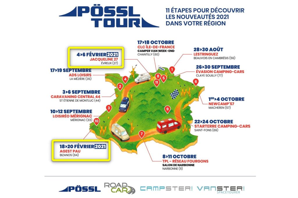 Ces journées VIP Pössl en régions offrent l’opportunité de découvrir les nouveautés vans et fourgons aménagés 2021 des marques Pössl, Roadcar, Campster et Vanster. Vous serez accueillis par les vendeurs professionnels, spécialistes de ces marques. L’équipe de Pössl France sera également présente : Isabelle et Serge Folegnani, les importateurs de la marque Pössl en France (Isaloisirs), répondront à vos questions et dispenseront leurs conseils avisés.