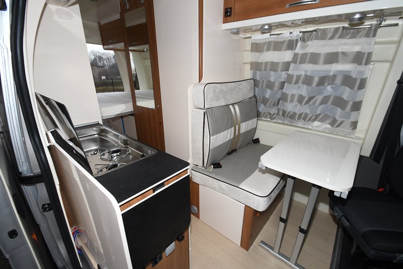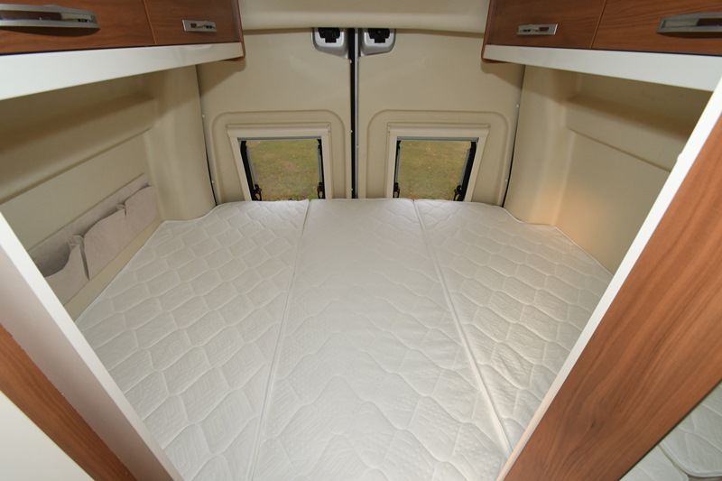 Au prix de départ, il faudra sans doute prévoir d’ajouter des équipements complémentaires faisant défaut : Stores Remis dans la cabine, moustiquaire de porte latérale ou grand lanterneau (70 x 50 cm) dans la chambre. Plusieurs packs vont dans ce sens. Au total, comptez un supplément d’environ 1 500 €. Un peu plus si vous voulez la carrosserie gris métal (+600 €) en remplacement du blanc standard