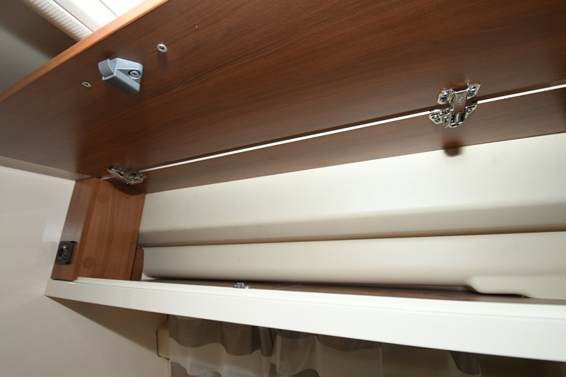 Sur le HORUS 36, les bonnes notes vont incontestablement en faveur du rangement, très important dans la soute, débarrassée de la plupart des équipements techniques, et dans la dimension très confortable du cabinet de toilette. A l’inverse, on pourrait discuter de la position haute du lit (90 cm du plancher) et de la profondeur des placards de pavillon, partiellement amputée par la rehausse d’origine Renault.