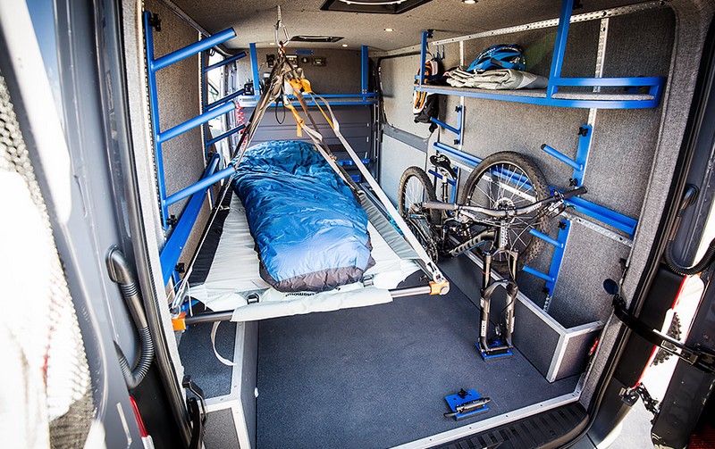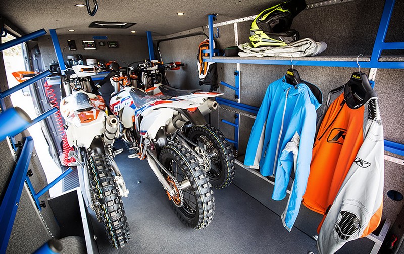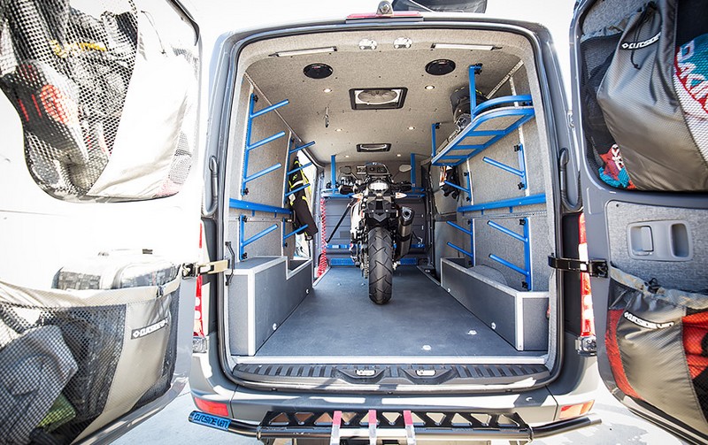 Ce Sprinter à toit bas dispose de deux portes coulissantes, d’une rampe d’accès associé à un système de treuillage ainsi que de multiples sangles d’arrimage pour pouvoir maintenir le ou les véhicules en mode route. S’il est taillé pour l’aventure, il conviendra aussi très bien au transport quotidien ainsi qu’aux petites escapades de quelques jours pour le loisir ou la compétition.