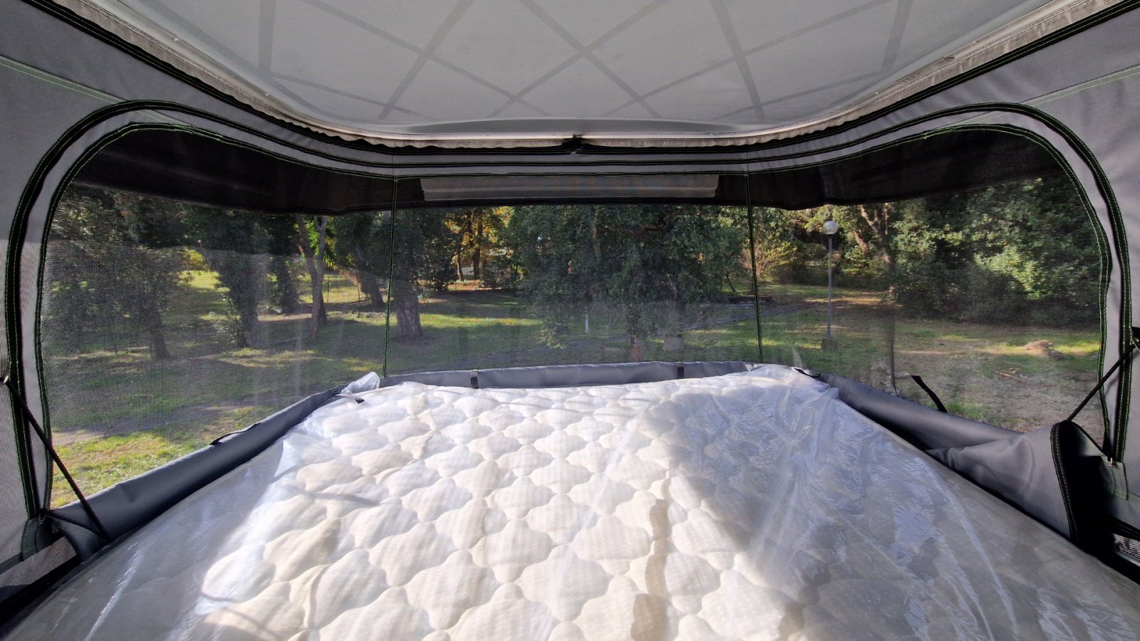L’intérêt premier de ce type de toit, c’est d’offrir une hauteur uniforme au niveau du lit mezzanine. De ce fait, vous gagnez en liberté de mouvement et vous avez la possibilité de dormir dans les deux sens, contrairement à un toit incliné où la hauteur sous barrot se réduit d’un côté. Une possibilité qui se révèlera appréciable quand, par exemple, votre véhicule sera garé en pente.