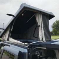 Pour faire de ce monospace du quotidien un van propice aux escapades de quelques jours, Ursa Minor lui adjoint un toit relevable fabriqué maison ; lequel abrite un matelas dont les dimensions le destinent en priorité à deux enfants (176 x 122cm). Ce toit se révèle bien doté avec sa toile imperméable et respirante, ses ouvertures et moustiquaires ou encore son éclairage LED. Sous la mezzanine de toit, une fois les sièges repliés, un second couchage (216 x 122 cm) peut être mis en place. Solution pour des voyages minimalistes, cette fourgonette fait l’impasse sur la cuisine, le salon ou le coin sanitaire. Ursa Minor proposera toutefois, d’ici début 2019, une tente à fixer sur le hayon ou encore des modules de rangement.