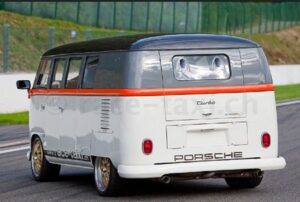 Le bolide est équipé du moteur six cylindres en ligne de la Porsche 993, bardé de deux turbos compresseurs. La boite de vitesses manuelle à six rapports, qui transmet la puissance aux roues arrière, est quant à elle extraite de la Porche 996 GT3. Le résultat ? Il est tout simplement bluffant puisque la puissance maximale atteint 530ch et le couple moteur 757Nm. Le créateur de ce Combi de course a par ailleurs eu recours à de la fibre de carbone pour limiter le poids du véhicule à 1500kg.