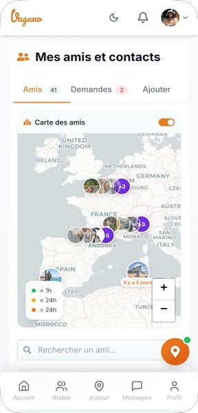Imaginez toujours… Vous avez planifié un roadtrip et vous vous dites que ce serait drôlement sympa de partager un bout du voyage avec un autre équipage. Vous ouvrez votre appli Vagano, vous renseignez les informations concernant votre destination à venir (lieu, date, etc.) et vous découvrez qui a prévu de se rendre au même endroit au même moment.