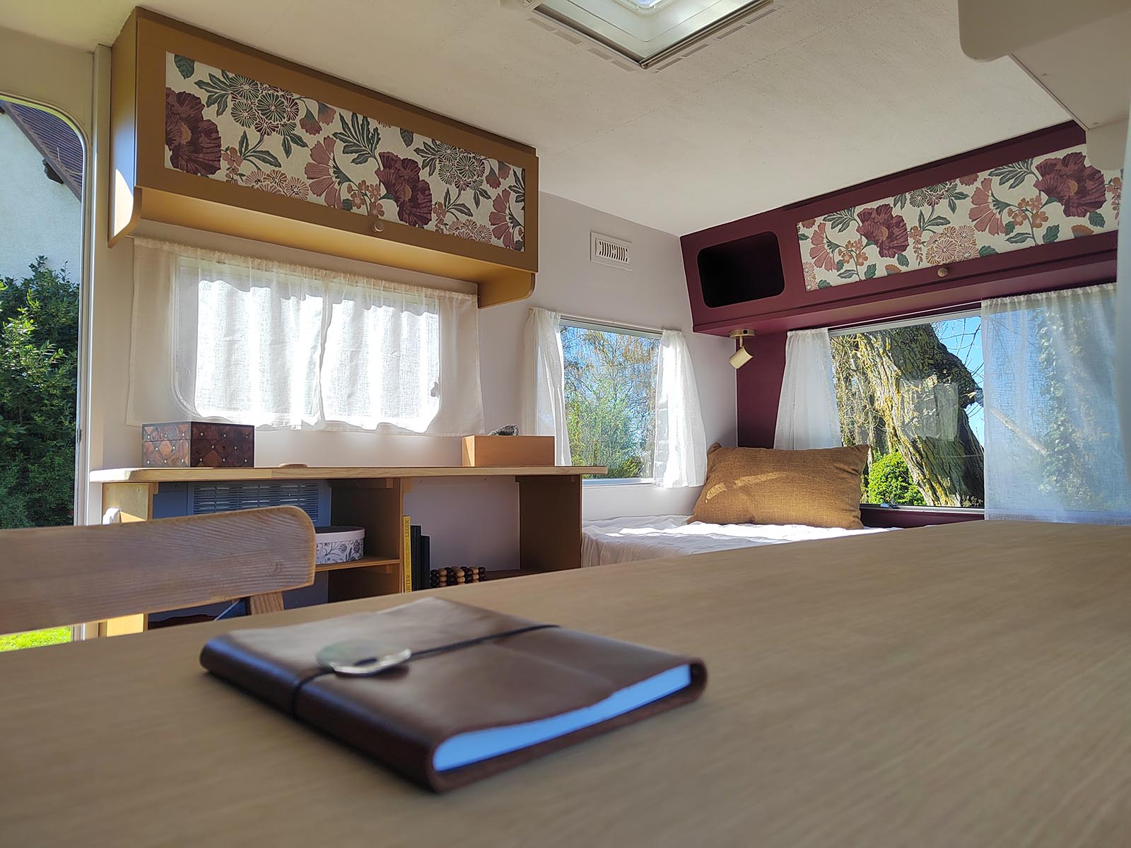 Après une première caravane pensée comme « une pièce en plus » (photos ci-dessous), ils profiteront du Camper Van Week-End pour dévoiler leur seconde réalisation : une caravane vintage rénovée pour prendre la route des vacances.