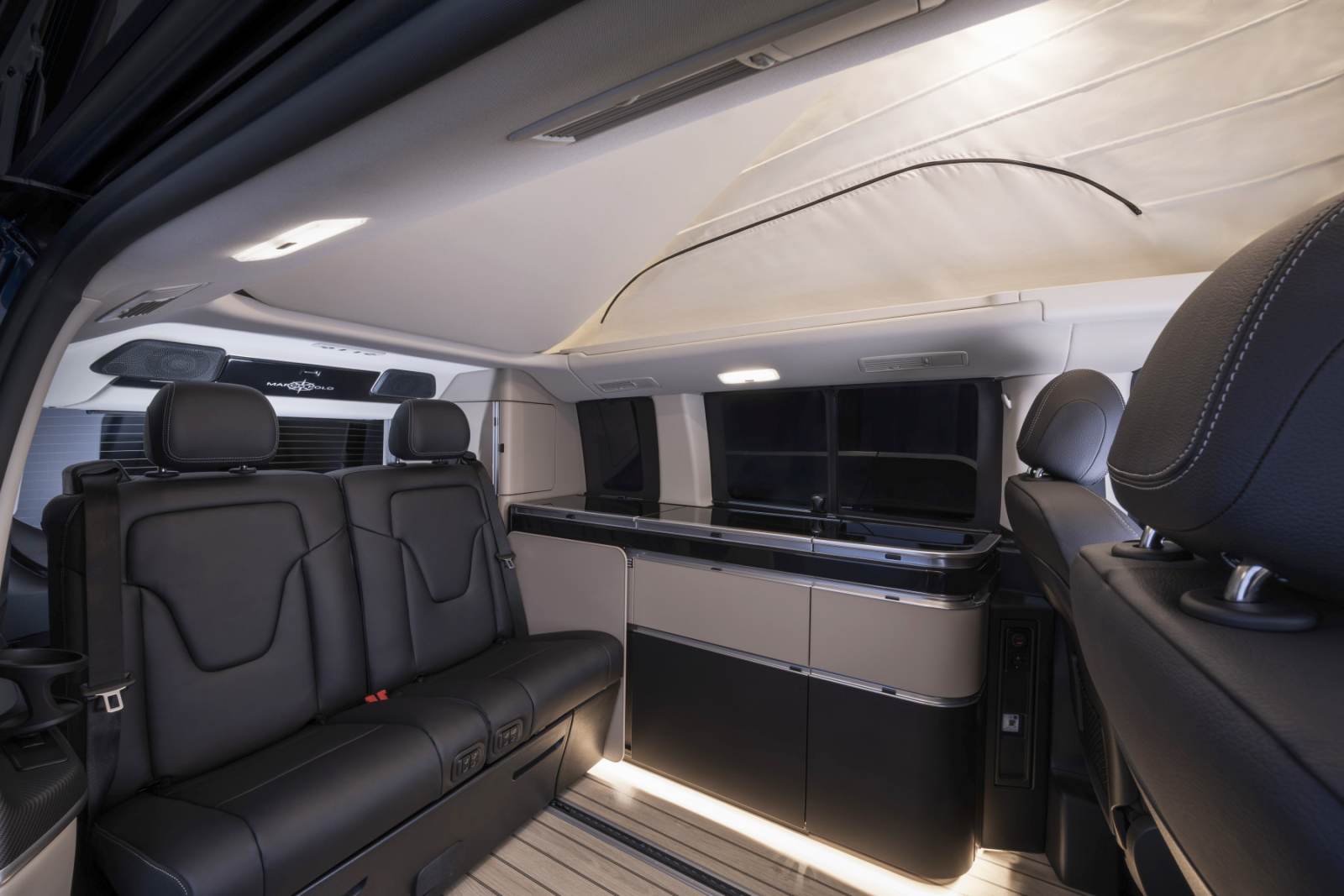 - Côté technologie, le Marco Polo adopte un système audio Jehnert haut de gamme à huit haut-parleurs et caisson de basses, ainsi qu’une connectivité MBAC enrichie permettant un pilotage centralisé via écran ou smartphone.