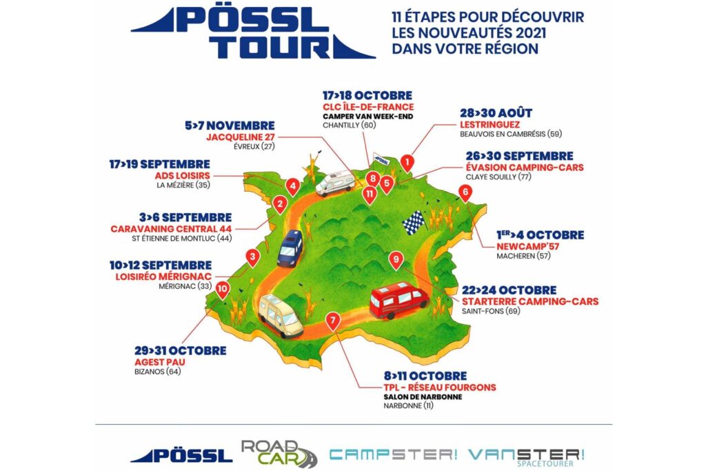 Le constructeur allemand Pössl organise un grand tour de France en 11 étapes, du 28 août au 7 novembre 2020....