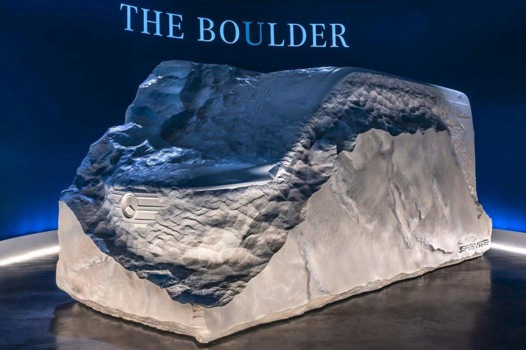Mercedes-Benz tease l’arrivée de son futur Sprinter, à travers une sculpture où l’on peut deviner un bout de calandre et la ligne du véhicule. Comme s’il était taillé dans la masse, à partir d’un bloc de pierre. Succédant au modèle actuel sorti en 2018, le Mercedes Sprinter de 4ème génération est annoncé pour 2027. Il se déclinera en deux architectures : VAN.EA pour la plate-forme modulaire à moteur électrique, VAN.CA pour son alter-égo thermique. On n’en sait pas beaucoup plus pour le moment sur ce nouveau fourgon de la firme à l’étoile, si ce n’est qu’il intégrera de manière poussée de l’IA et qu’il sera produit en Pologne.