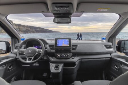Dans le coffre à l’arrière, le Trafic Escapade reçoit un module compact avec cuisine intégrée, comprenant un réchaud gaz, un évier escamotable et sa douchette, un réservoir d’eau propre symbolique de 5 litres et des rangements astucieux. Homologué VASP, le Trafic Escapade est exonéré de malus CO₂ et de taxe sur la masse.