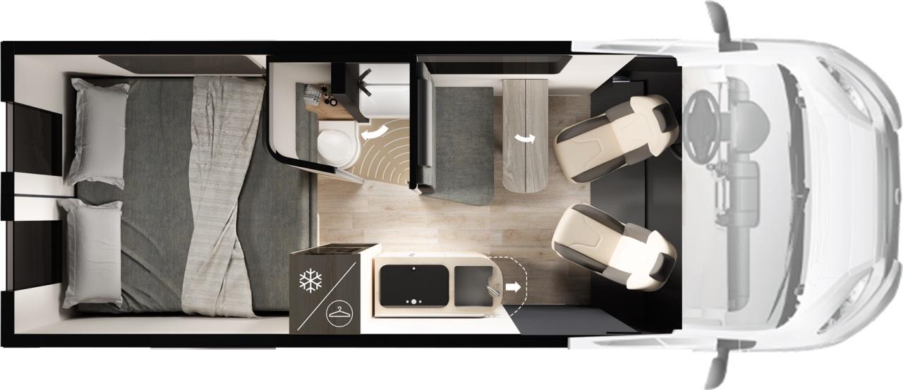 - Pack Artic Diesel : (1360 €) réservoir des eaux usées isolé, chauffage diesel Combi 6D, isolation thermique de la cabine, isolation thermique de cabine, stores plissés cabine et portes AR, couvertures sur les baies).