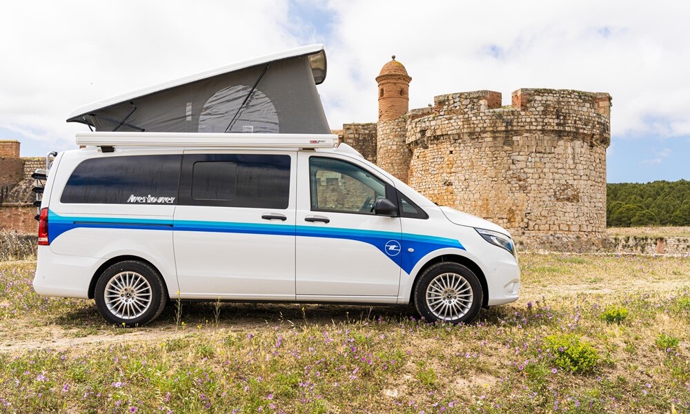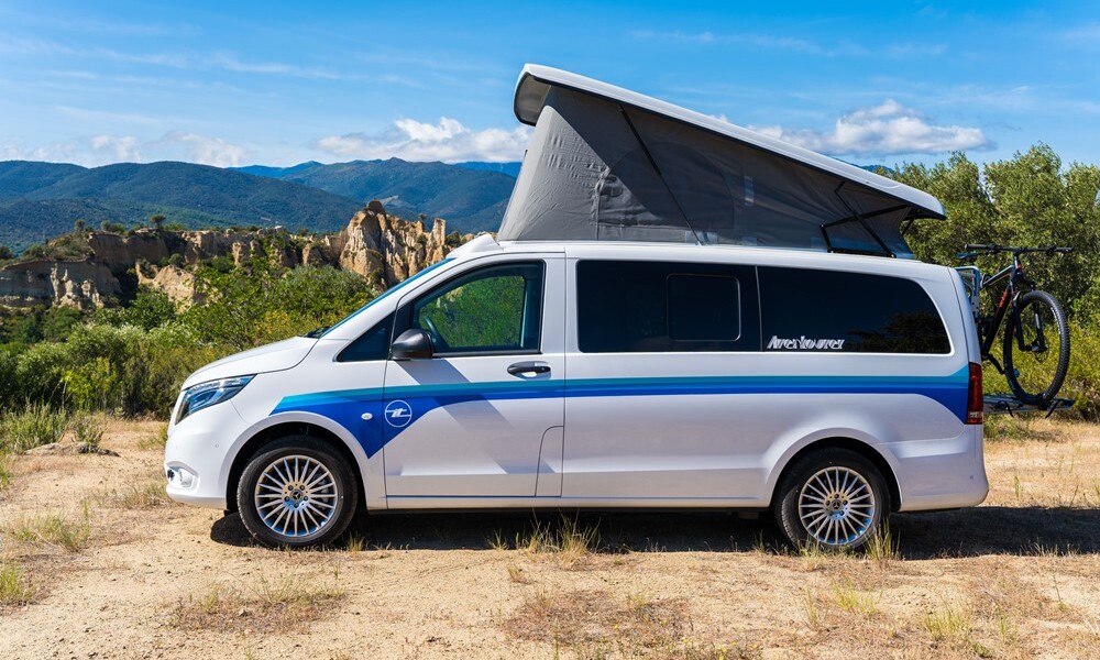 Plus luxueux, l’Aventourer sur Mercedes Vito affiche un prix de départ de 53 490€ avec la motorisation 163ch et la boite automatique 9G Tronic (+5000€ pour la version 4×4). Là encore, le porteur se montre richement doté (radar + caméra de recul, climatisation semi-automatique, jantes alliage, volant multifonctions, autoradio numérique, etc.), tandis que l’habitacle peut être complété par nombre d’options.