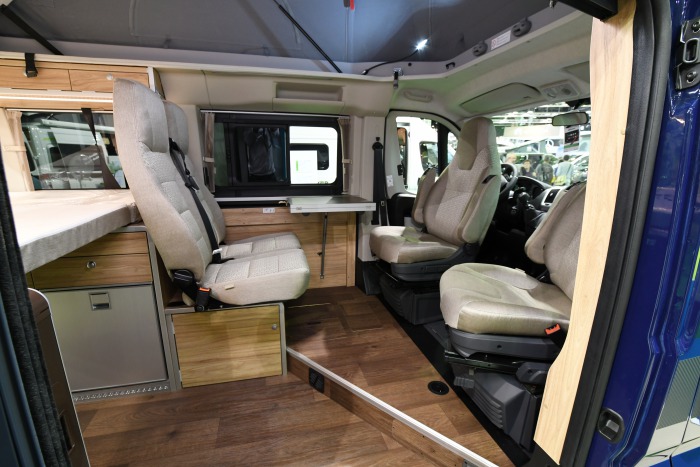 Le van aménagé le plus compact du catalogue Hymercar, le Sydney (4,96 m) est présenté au salon du Bourget dans une version HC Racing super-équipée avec motricité renforcée et sound system (64.301 €). De quoi en mettre plein les yeux et les oreilles !