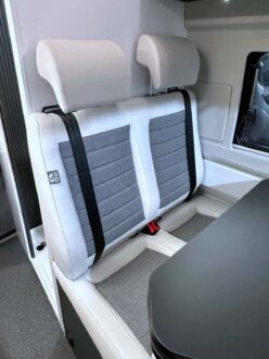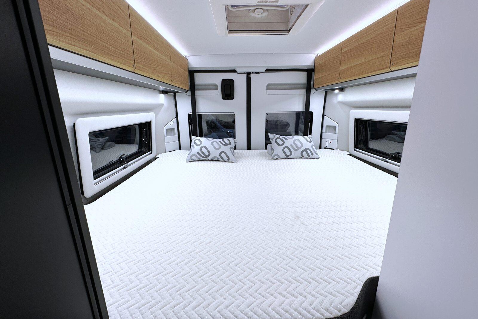 Le constructeur slovène profite de sa série Anniversaire pour apporter une amélioration notable au niveau de la salle d’eau. Si le système Vario, avec paroi pivotante, est retenu, celle-ci est amputée de sa partie inférieure pour passer au dessus du WC. Résultat, on profite davantage d’espace en prenant la douche.
