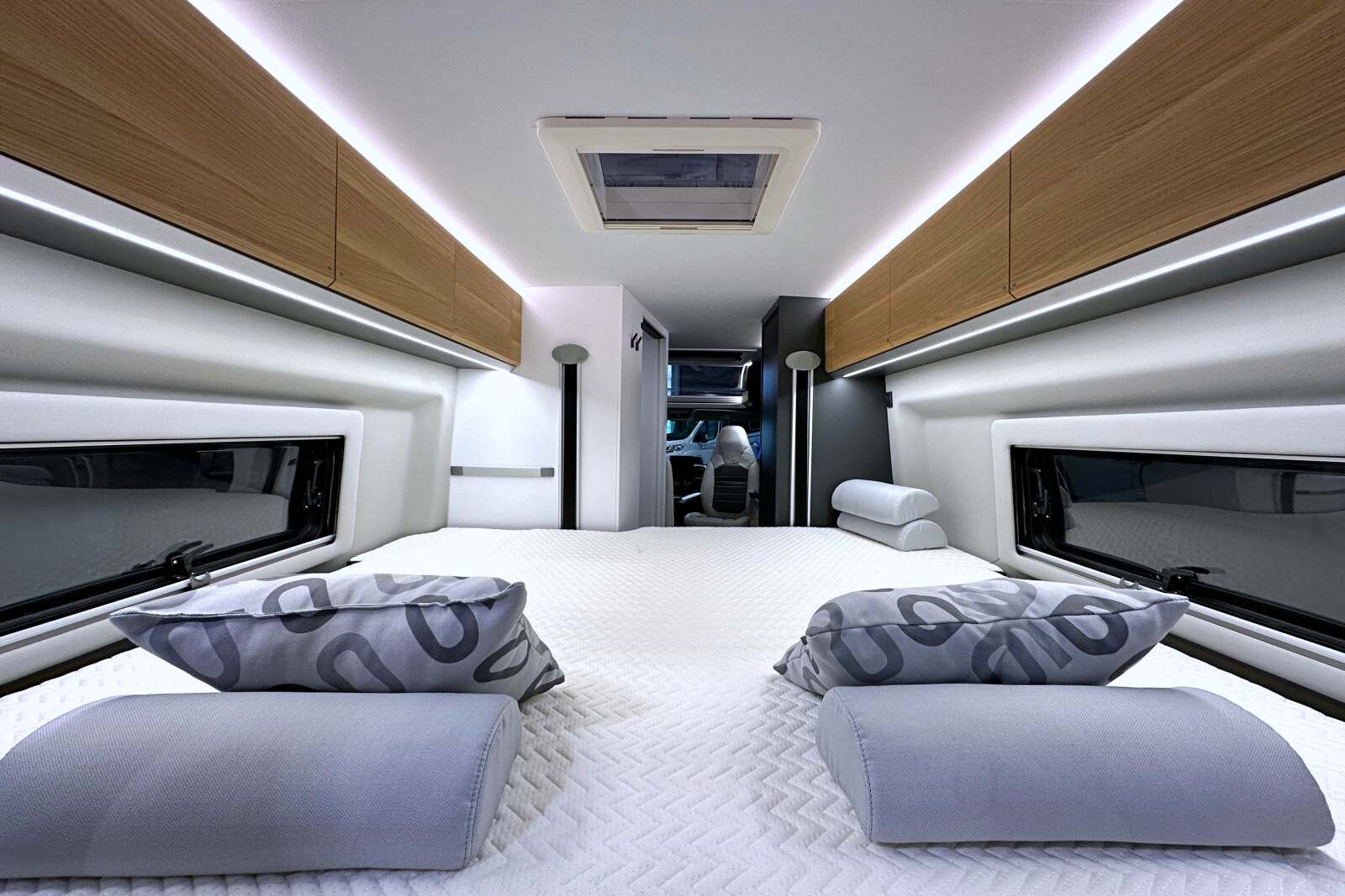 Trois modèles Adria sont mis à l’honneur de cette série spéciale 60 ans, les profilés Matrix 650 DC et Compact DL, et donc côté fourgon : le Twin Sports 640 SGX PTR. Un modèle de 6,36 m sur Fiat Ducato bien connu chez Adria, avec son lit de pavillon électrique sur soute, son toit relevable de série (PTR : Pop Top Roof) et son skyview au dessus de la cabine. Une polyvalence et des volumes inégalés, adaptés aussi bien à la pratique sportive qu’aux voyages en famille.