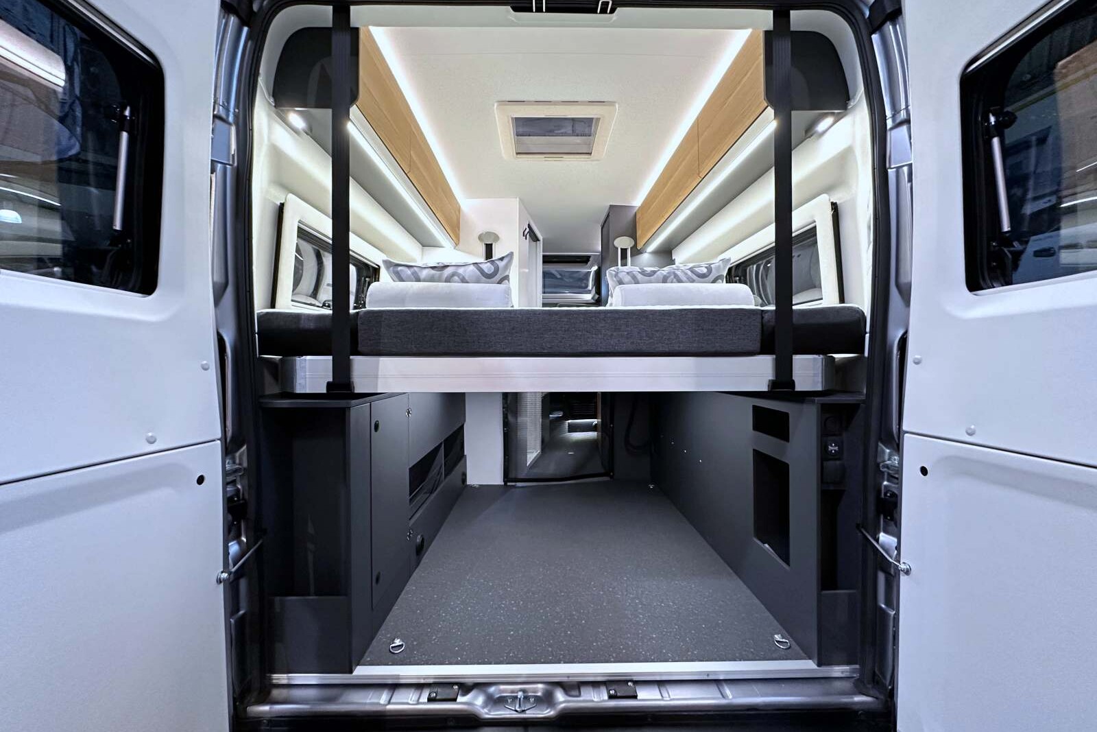L’extrême modularité des espaces constitue l’Adn de ce Twin Sports 640 SGX PTR : chambre supplémentaire sous le toit relevable, volume variable de la maxi-soute permettant d’embarquer vélos ou moto, jusqu’à la nouvelle salle d’eau Vario.