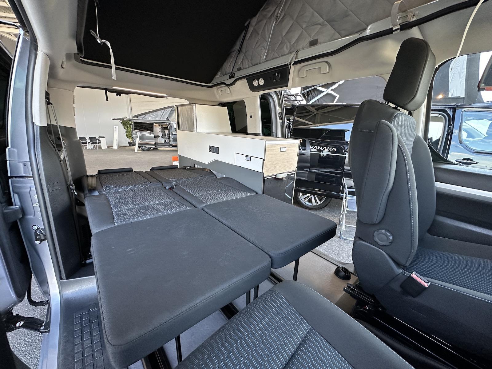 Faute d’avoir été livré à temps, Panama présente ses nouveaux Urban sur l’ancien châssis Peugeot Traveller. Mais ce sera bien la version mise à jour du K0, en format compact (4,98m) et avec toujours deux portes latérales coulissantes, qui équipera la gamme 2025.
