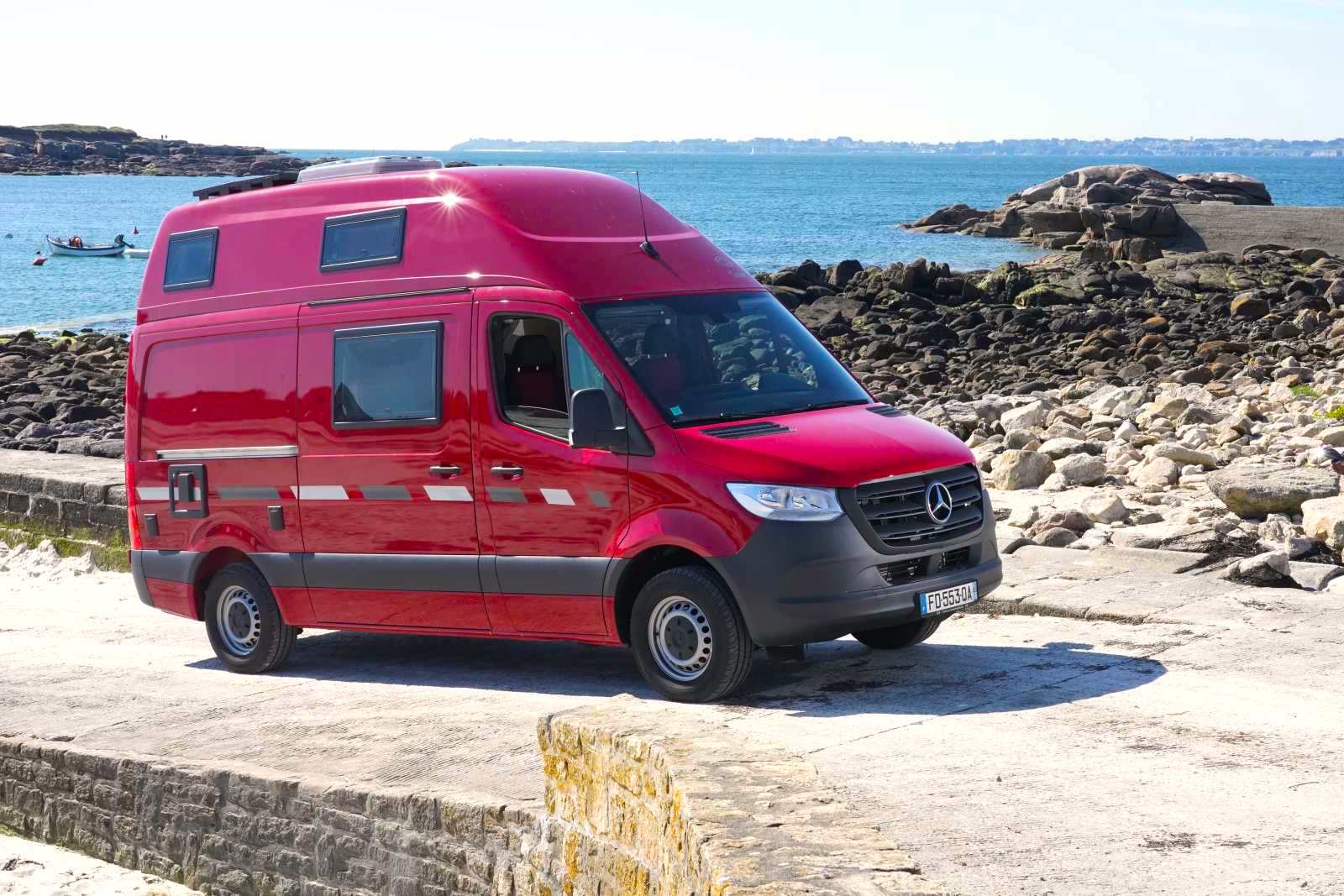 - Équipements : batterie au gel 235 Ah, réfrigérateur à compression 110L, combiné de chauffage/chauffe-eau Truma Combi 4, 2 bouteilles de gaz 11 kg, disposition antigel, table sur glissière avec pans repliables (option), assistants feux de route et vent latéral, MBUX 10,25 » avec GPS, volant multifonctions, caméra de recul,climatisation semi-auto Tempmatik, régulateur de vitesse, assistant de franchissement de ligne, etc.